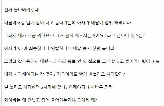 저 아재는 엘리베이터에서 마스크 벗고 뭐 먹어서 뭐라 하는 줄 알았나보네