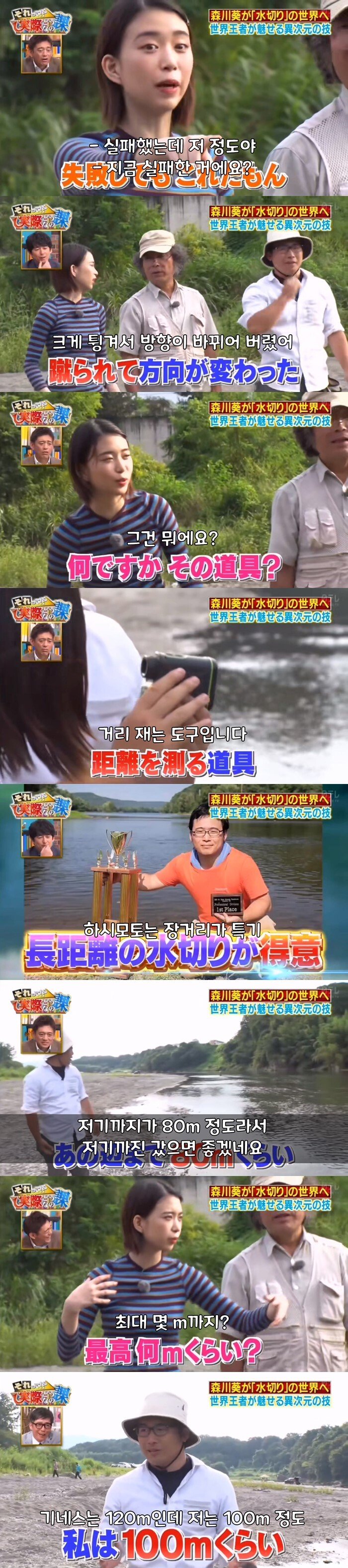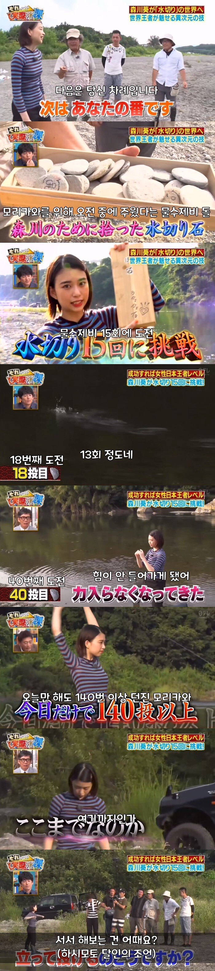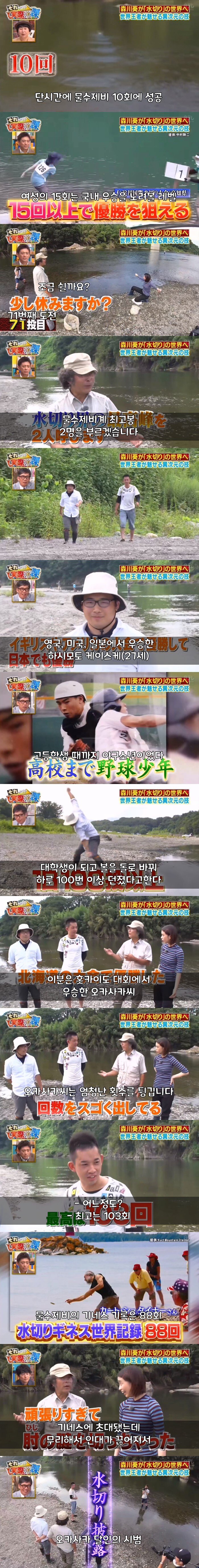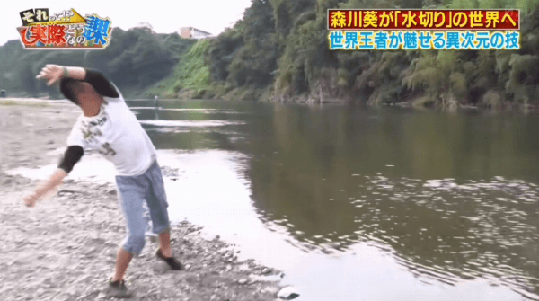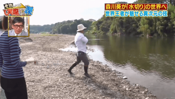 일본의 김병만이라고 불리는 모리카와 아오이가 물수제비의 달인을 찾아감